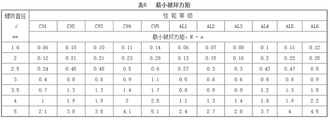 試驗方法按GB /T 3098.10第7章進行,測得數(shù)據(jù)應(yīng)符合表3-表5的規(guī)定
