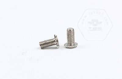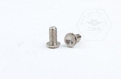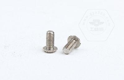 在使用過程中需在基體上開一個小孔,將壓鉚螺釘放入孔內(nèi),采用鉚壓設備平行的均勻的在頭部平壓,因壓鉚螺釘?shù)念^部下有齒紋壓花,當壓入后,基體在壓鉚螺釘?shù)闹車a(chǎn)生變形,和齒紋發(fā)生咬合現(xiàn)象,從而形成一個牢固的外螺紋。