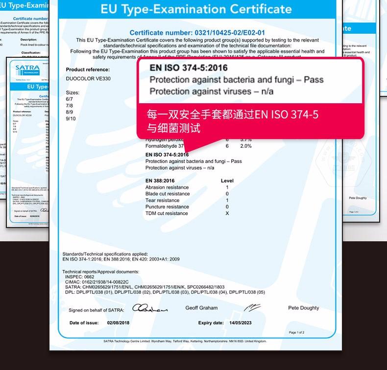 • 產(chǎn)品描述:抑菌型天然乳膠防化手套,百分之百天然乳膠材質(zhì),鋸齒袖口、粗糙表面,易于緊握。具有良好的耐水性與優(yōu).秀的防微生物風(fēng)險功能。手套通過EN ISO 374-5抗真菌與細(xì)菌測試,同時通過食品安.全監(jiān)測。適用于生物實驗室、畜牧業(yè)、養(yǎng)殖業(yè)。