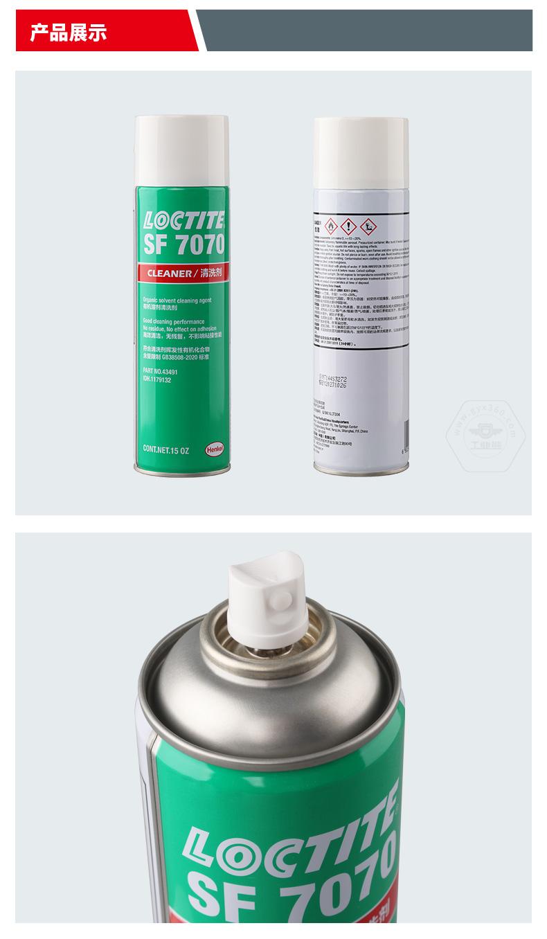 • 產(chǎn)品描述:樂泰SF7070是一種無色透明溶劑型(不含氟氯烴的)部件清洗劑和脫脂劑,它經(jīng)過特別配制,可使部件與膠粘劑粘合。該產(chǎn)品適合在室溫下用做噴劑,能去除部件上的大部分油、油脂、潤滑液、金屬切削液和細粉,可安全用于鋁、橡膠和大多數(shù)塑料。