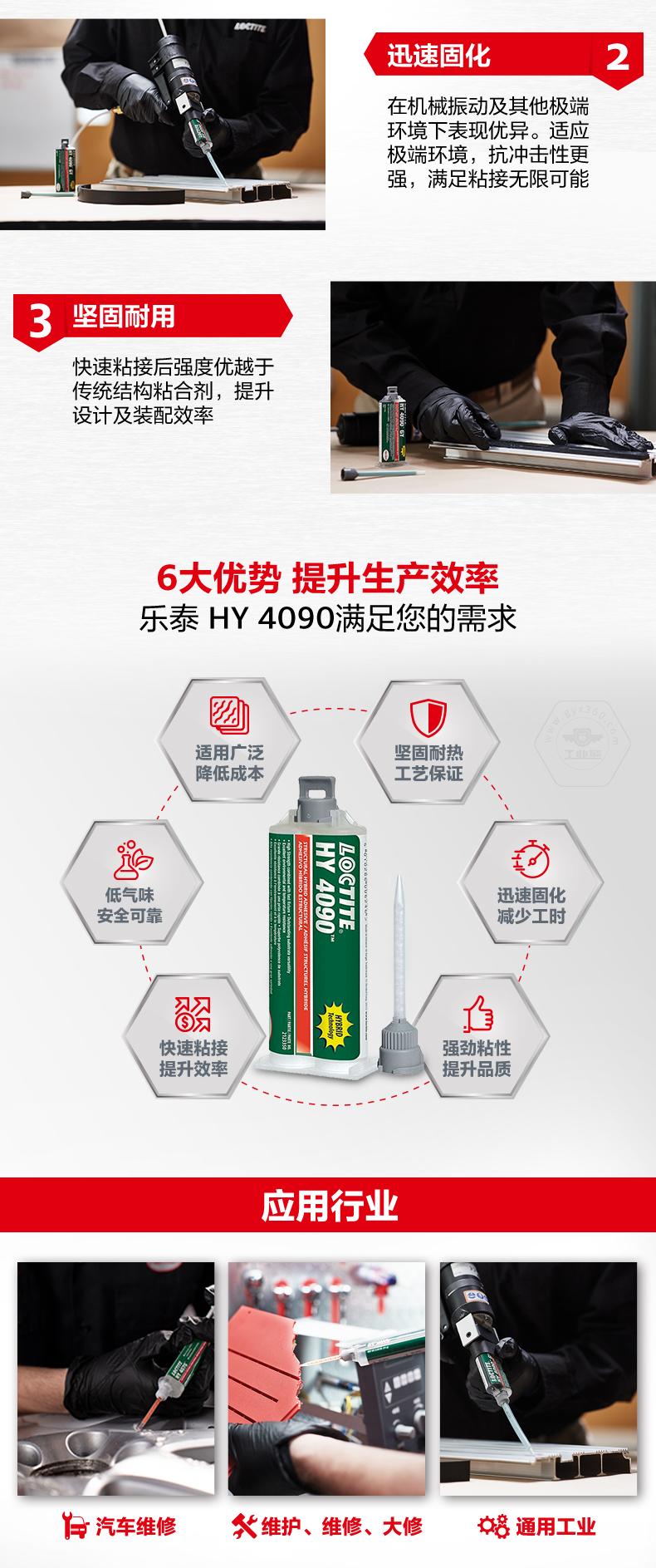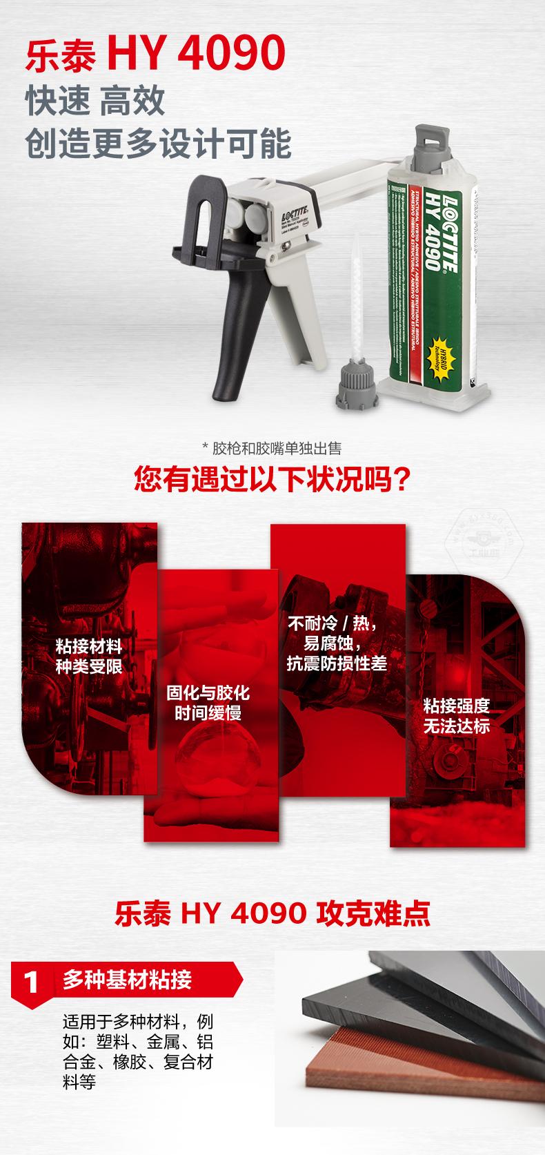 樂泰HY4090主打迅速固化、強(qiáng)勁粘性和多種基材粘接。樂泰HY4090適用于塑料、金屬、鋁合金、橡膠及復(fù)合材料,兼顧低氣味、安全可靠。樂泰HY4090在機(jī)械振動(dòng)及其他極端環(huán)境下表現(xiàn)優(yōu)異,快速粘接后強(qiáng)度優(yōu)于傳統(tǒng)結(jié)構(gòu)粘合劑,可提升設(shè)計(jì)與裝配效率,適用于汽車維修、維護(hù)維修大修和通用工業(yè)。