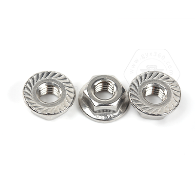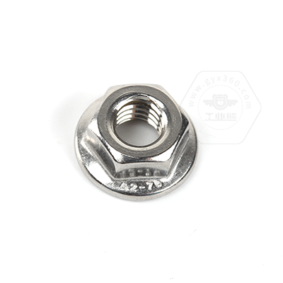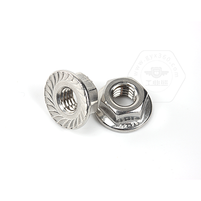 • 產(chǎn)品描述:DIN6923 六角法蘭帶齒螺母,又名六角法蘭面帶齒螺母、六角法蘭帽、六角帶墊帶防滑齒螺帽、法蘭面防松帶齒螺母、花齒法蘭防松螺母。DIN6923 六角法蘭帶齒螺母,法蘭面與六角螺母一體成型,法蘭面帶花齒比平面法蘭鎖緊力更強。法蘭帶齒的設(shè)計具有防滑止動的作用,裝配時不需要額外使用平墊、彈墊,使用起來更為方便。DIN6923標(biāo)準(zhǔn)規(guī)定了螺紋規(guī)格為M5-M20;性能等級為碳鋼8、10、12和不銹鋼A2-7