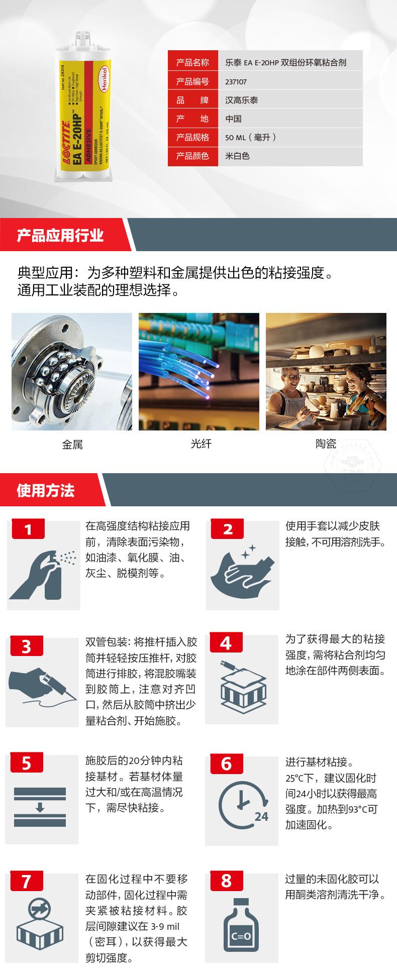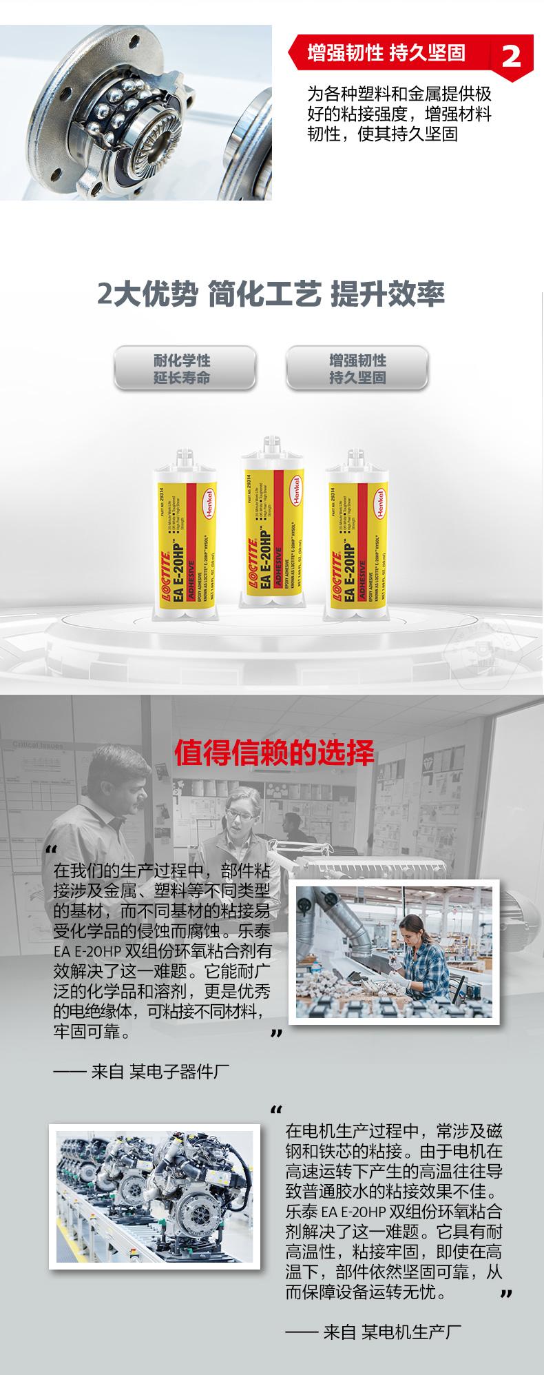 樂泰EA E-20HP雙組份環(huán)氧粘合劑是一款雙組份、通用型工業(yè)級環(huán)氧樹脂膠粘劑。樂泰EA E-20HP雙組份環(huán)氧粘合劑具備高抗剝離性、高剪切強(qiáng)度、耐化學(xué)性和增強(qiáng)韌性,可為多種塑料和金屬提供出色粘接強(qiáng)度。樂泰EA E-20HP雙組份環(huán)氧粘合劑適用于金屬、光纖、陶瓷等材料,是通用工業(yè)裝配的理想選擇。